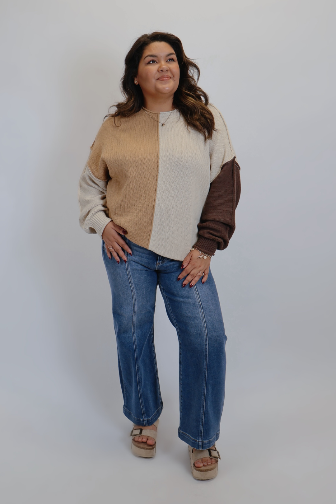 Doux et confortable, le pull colorblock Brown Sugar apporte des tons chauds et un charme décontracté à votre garde-robe. Avec ses larges empiècements beige, crème et marron chocolat, ce modèle allie des tons neutres doux à une allure résolument tendance. Ses épaules tombantes, ses coutures apparentes et ses finitions côtelées lui confèrent ce côté usé et déstructuré qu'on adore. Parfait avec un jean ou à superposer sur une chemise à col pour un look décontracté chic.