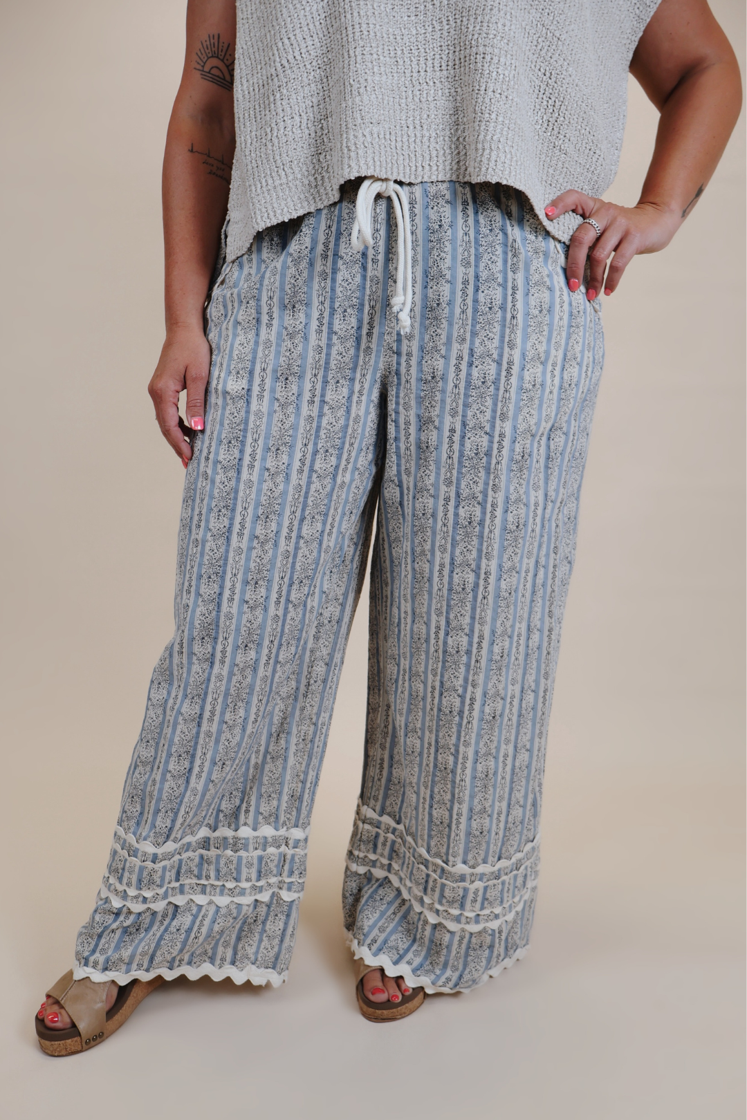 Découvrez un confort et un style incomparables avec notre pantalon Dreaming Of The Day. Grâce à sa taille élastiquée ajustable et à sa coupe ample, ce pantalon vous garantit une liberté de mouvement et une allure fabuleuse tout au long de la journée. Dites adieu aux pantalons qui vous serrent et bonjour à votre nouveau pantalon fétiche !