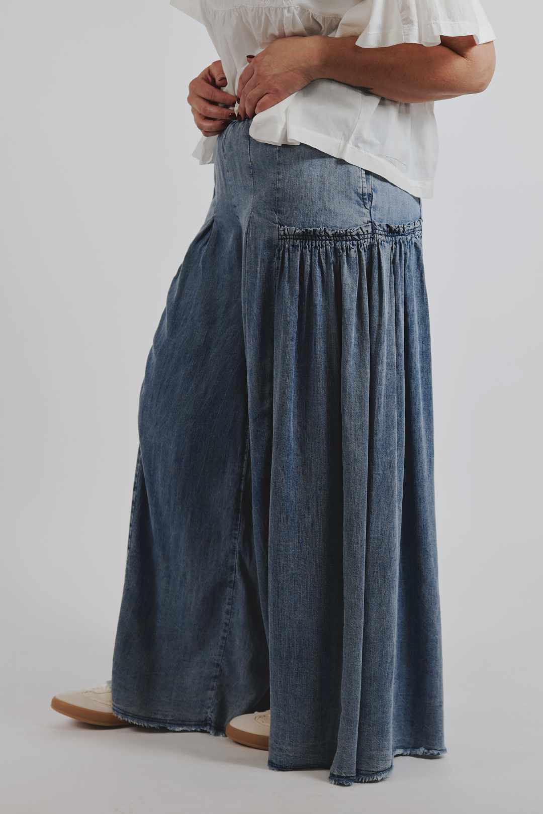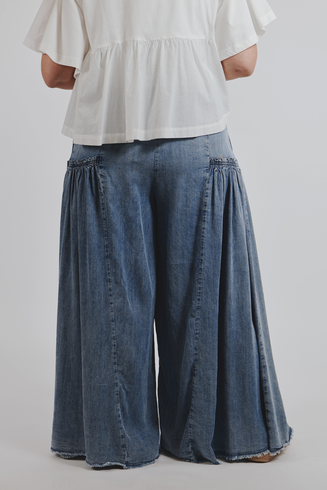 Découvrez le pantalon fluide et doux que votre garde-robe attendait : le pantalon palazzo en chambray Dreamy. Confectionné en chambray 100 % Tencel léger, ce modèle à jambes larges offre une coupe aérée et ultra-confortable qui accompagne vos mouvements. La taille élastiquée assure un confort optimal, tandis que les détails à volants sur les côtés ajoutent une touche bohème irrésistible.