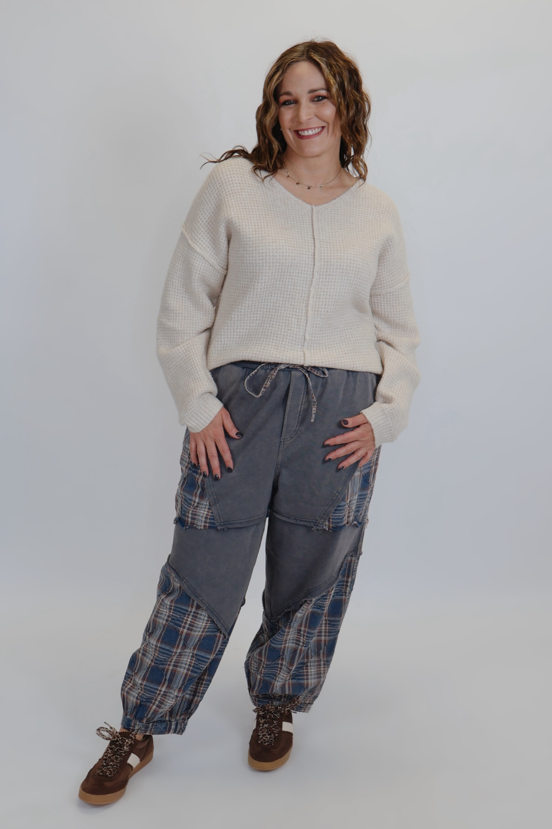 À la fois élégants et ultra-confortables, ces pantalons en éponge mélangée à carreaux délavés et matelassés sont parfaits pour les journées décontractées avec une touche d'originalité. Dotés d'une finition douce délavée aux minéraux, ces pantalons offrent une coupe décontractée, confortable et flatteuse. Les empiècements matelassés à carreaux ajoutent une touche vintage, faisant de cette pièce un incontournable de toute garde-robe décontractée.