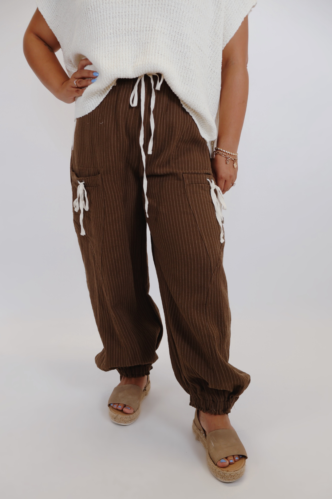 Cordons de serrage contrastés à la taille et aux jambes
