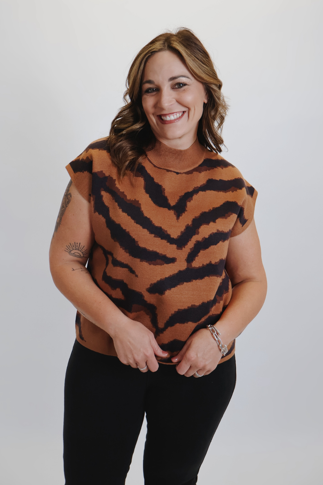 Affirmez votre style avec le pull à col montant Wild Streak. Son motif animalier saisissant et sa coupe décontractée allient modernité et confort. Son tissu en maille douce et mi-lourde offre un joli tombé, idéal pour la mi-saison. Avec ses manches courtes et son col montant flatteur, il se prête à toutes les occasions, des plus décontractées aux plus habillées.